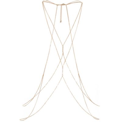 Worn quite regularly by Rihanna (I found lots of images of her wearing this type of chain), these are chains that are worn in some way over the torso. She tends to wear them over bare skin, a little more difficult in a British climate! However, they can also be worn over clothing.